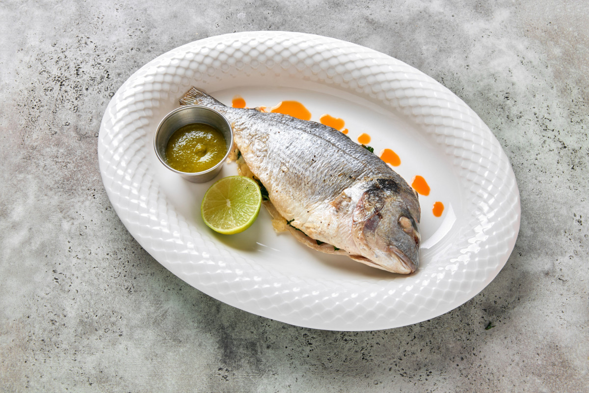 Черная треска, соус гейз, брокколи соус карри-лемонграсс |