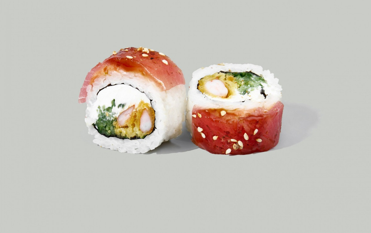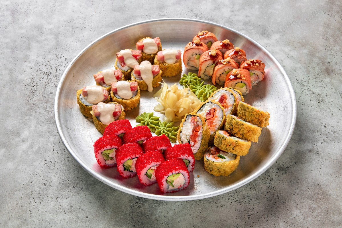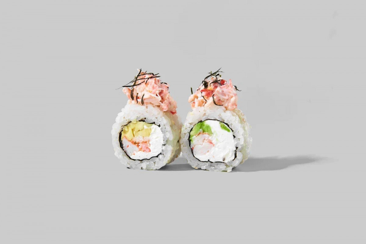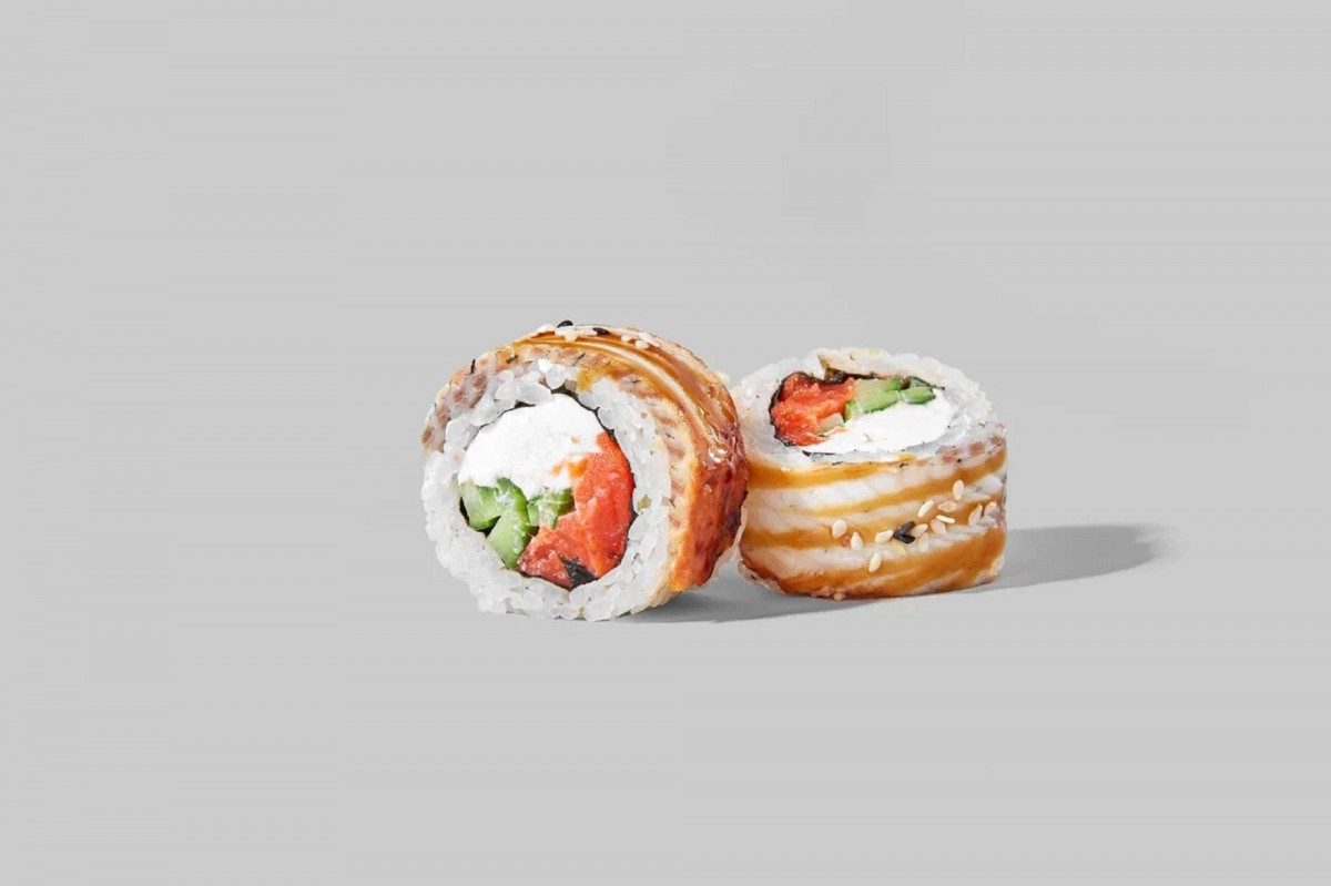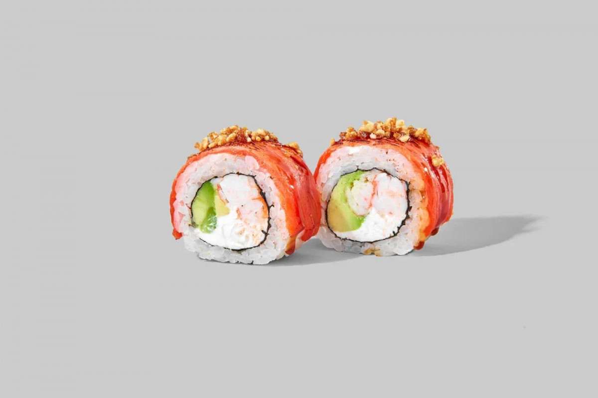 Ролл нерка с карамелью 8 шт., хрустящий рол с неркой 8 шт., ролл вителло тунец 8 шт., ролл калифорния 8 шт.