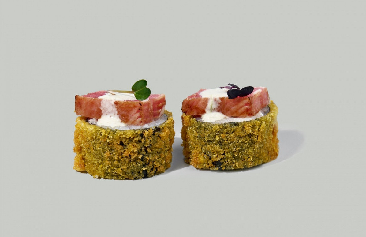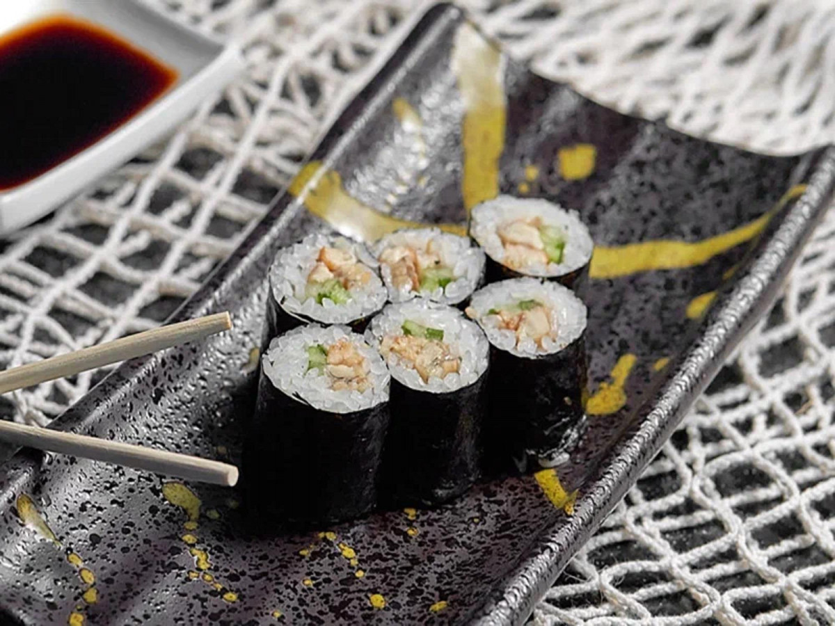 Водоросли нори, рис, паштет из угря, угорь, сыр сливочный, соус соевый, васаби, имбирь маринованный |